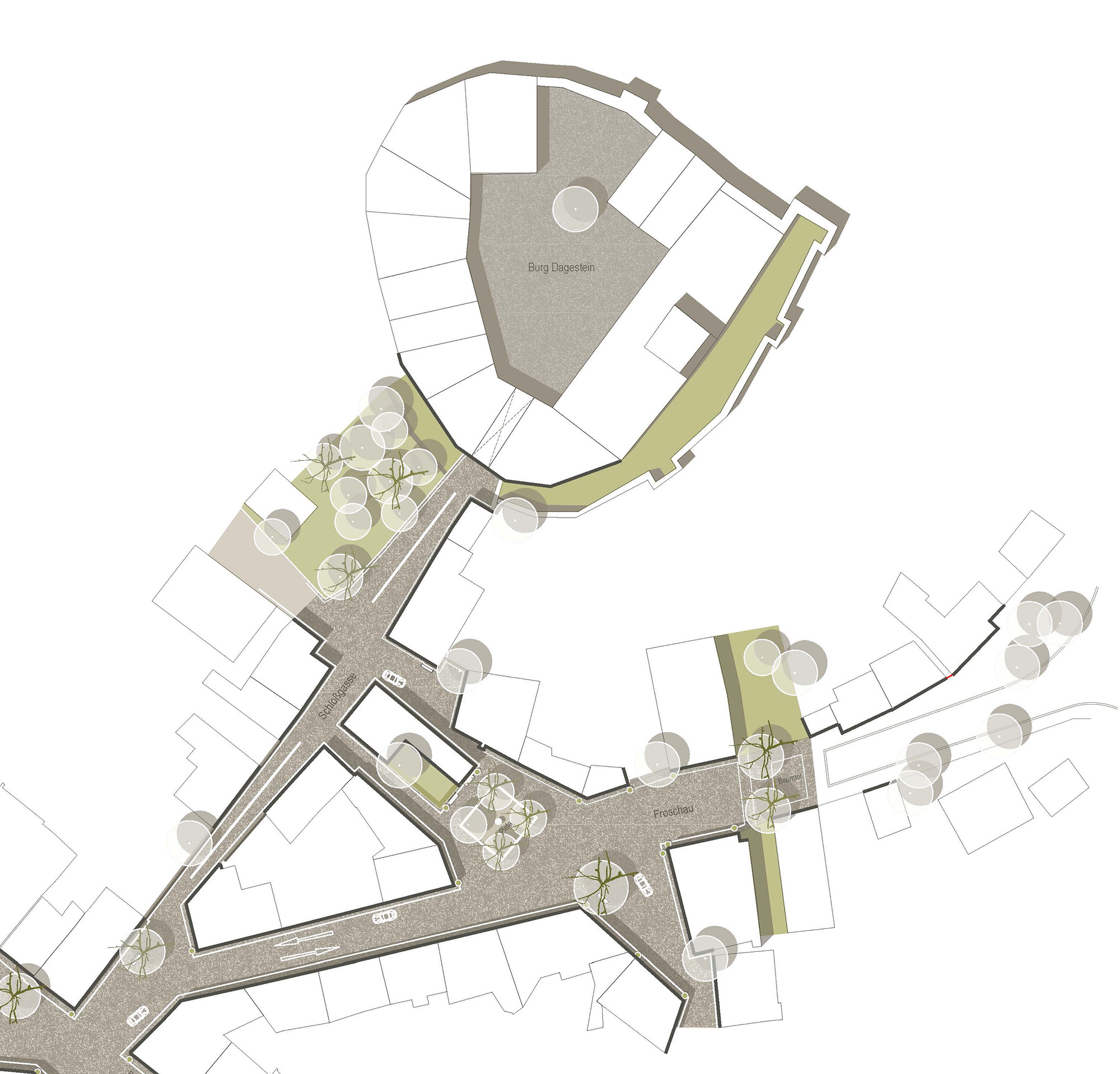 Vilseck verfügt über eine großzügige und einladende innere Platzfolge, deren Wirkung wesentlich durch die fassenden Platzbauten geprägt ist. Das Konzept entwickelt sich bewusst zurückhaltend aus den bestehenden, unverwechselbaren Qualitäten des Ortes.