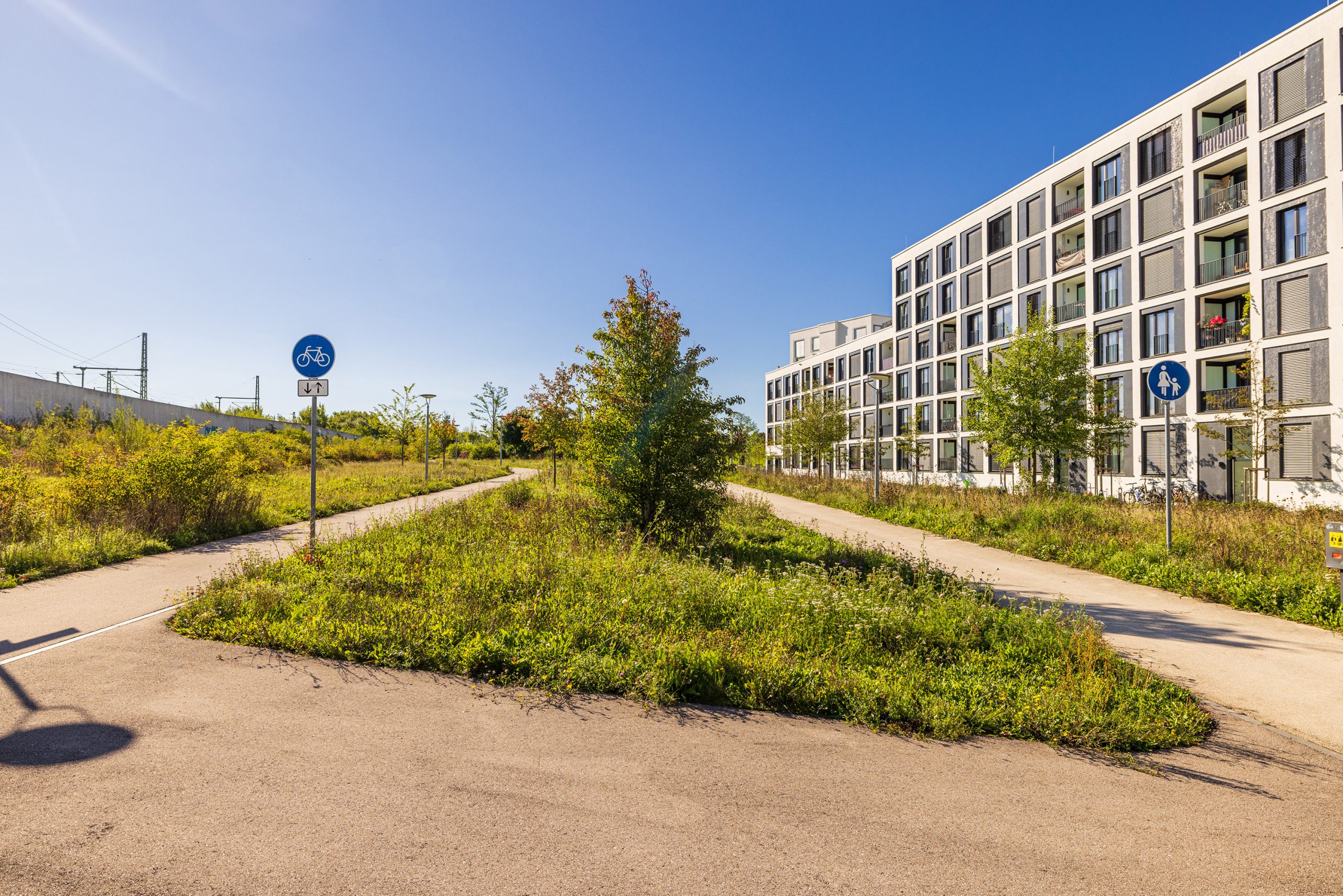 Dieser verbindet in ökologischer Hinsicht die Bahnbiotope und zum anderen, über Fuß- und Radwege, das Quartier mit den angrenzenden Grünzügen sowie übergeordnet auch Pasing mit der Innenstadt.